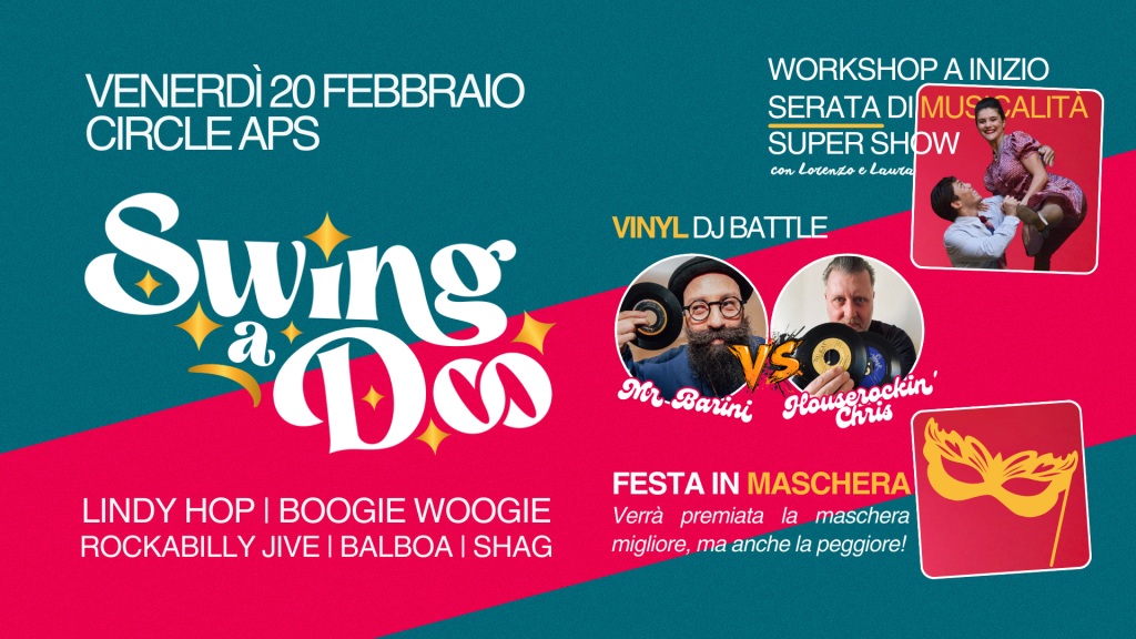 Vinyl DJ Battle: 𝘚𝘸𝘪𝘯𝘨 𝘷𝘴 𝘙𝘰𝘤𝘬’𝘯’𝘙𝘰𝘭𝘭/𝘙𝘯𝘉 con 𝐇𝐨𝐮𝐬𝐞𝐫𝐨𝐜𝐤𝐢𝐧’ 𝐂𝐡𝐫𝐢𝐬 e 𝐌𝐫 𝐁𝐚𝐫𝐢𝐧𝐢 (Crazy battle durante la serata